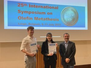 有機化学研究室のKanticha Jaiyen特任助教が25th International Symposium on Olefin Metathesis and Related Reactions で最優秀講演賞を受賞しました。「Synthesis of Functionalized Bottlebrush Polymers through Z-/E-specific Living ROMP Exhibiting Distinct Thermal and Emission Properties (特異な熱・発光特性を示す官能基化Bottlebrushポリマーの 立体特異的合成)」の発表が優秀と認められました。